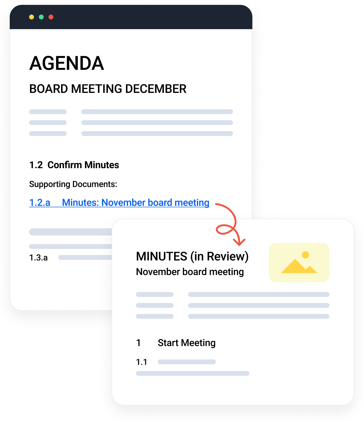 BoardPro Notes™ isn’t just for meeting preparation, it also helps your meetings run more smoothly. The agenda and meeting papers in the board pack are hyperlinked, so you can navigate between the documents and back to agenda at ease. On each page you can click on the top right corner, which links you back to the meeting agenda. There is also a powerful search function to help you find exactly what you need in the board pack.